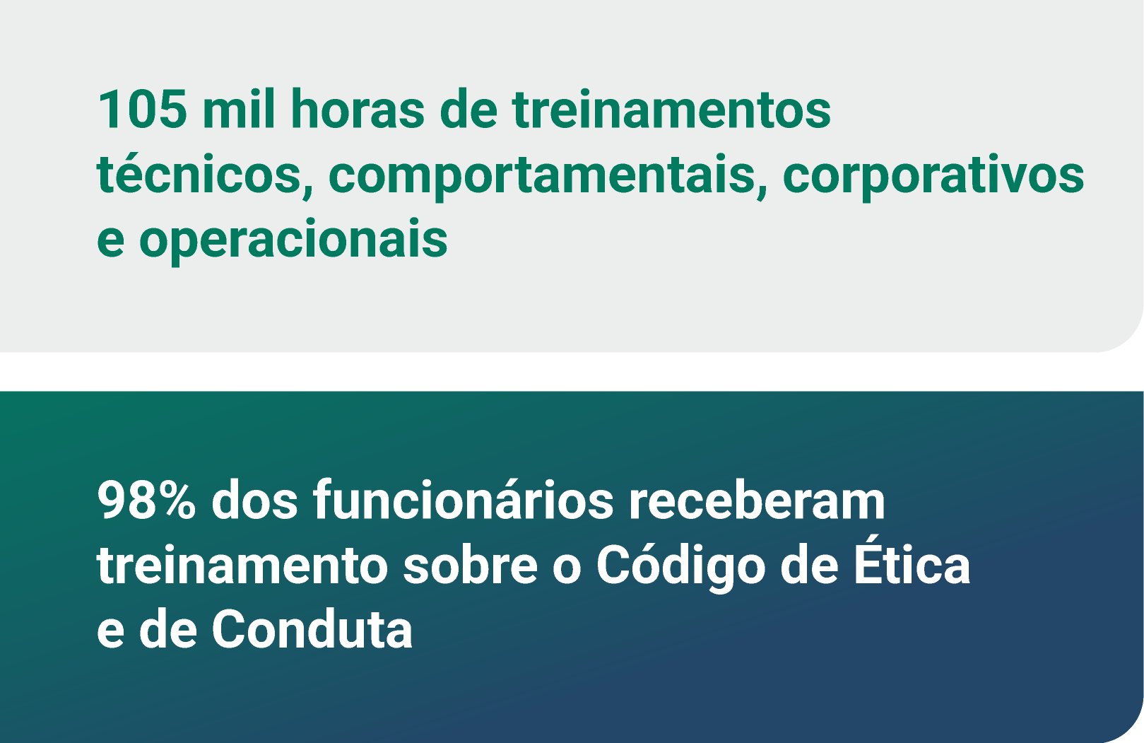Valorizamos nossos funcionários como parte essencial do crescimento da companhia. Promovemos um ambiente de trabalho inclusivo, seguro e transparente, com oportunidades de capacitação e desenvolvimento contínuo. Incentivamos o protagonismo, a diversidade e o diálogo aberto, fortalecendo vínculos e o crescimento profissional.